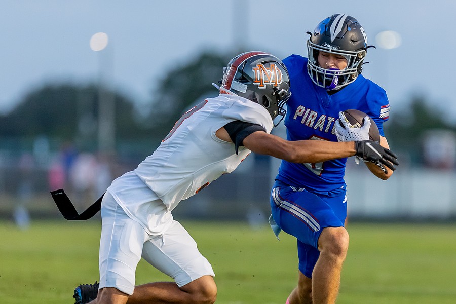 Matanzas receiver Thomas Larywon, right, caught five passes against the Hurricanes. Photo by Keishia McLendon