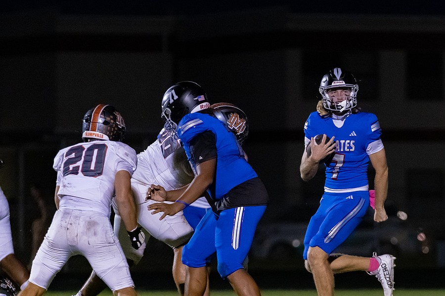 Matanzas quarterback Cole Walker (7) ran for a touchdown and passed for a touchdown against Mount Dora. Photo by Keishia McLendon