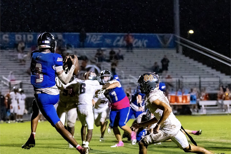 Matanzas produced 394 yards of offense while holding Mount Dora to 192 and led in time of possession (31:15 to 16:45), total offensive plays (78-42) and first downs (27-9). But the Hurricanes tied the score at 10-10 in the third quarter on Cayden McCoy’s 42-yard field goal. And then, early in the fourth quarter, with rain pouring down, McCoy booted a 54-yard field goal to give Mount Dora the lead.