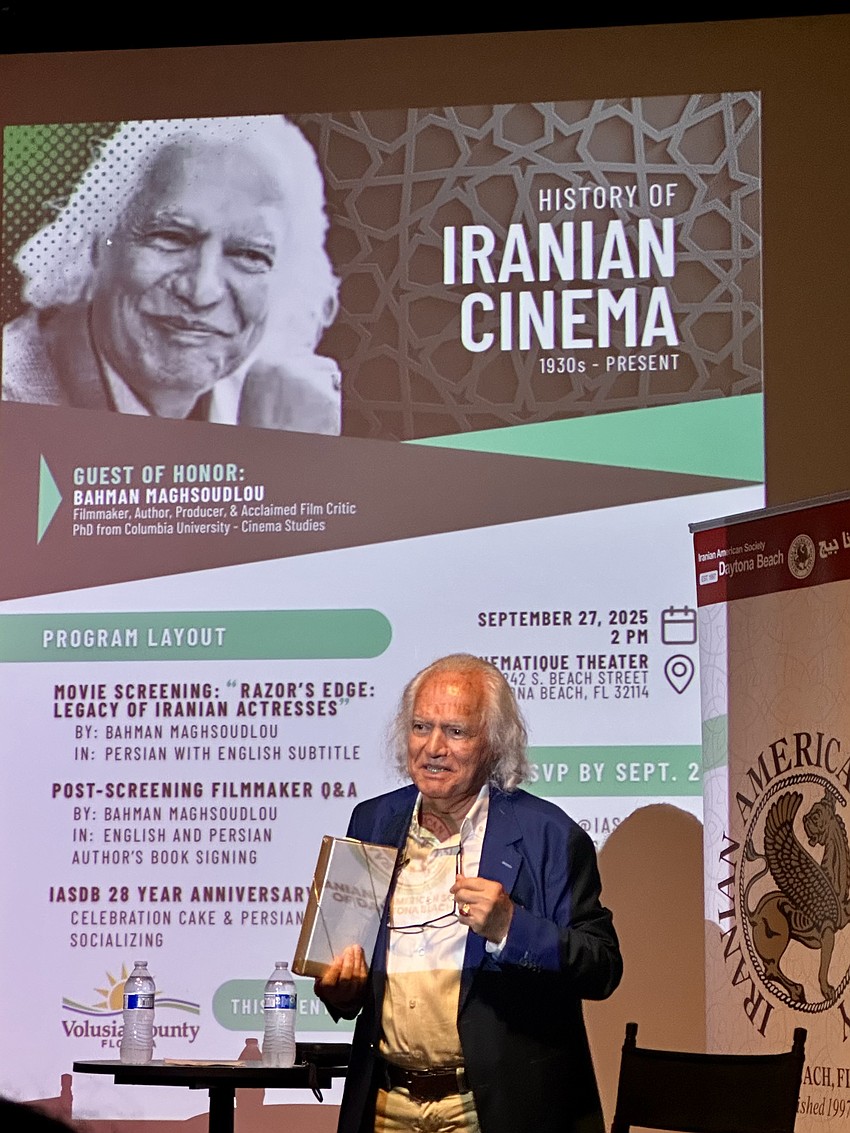 The Iranian American Society of Daytona Beach celebrated its 28th anniversary on Sept. 27, with a film screening featuring filmmaker Bahman Maghsoudlou at Cinematique Theater.