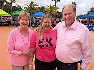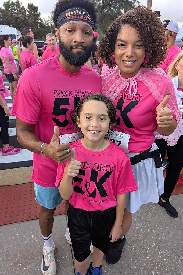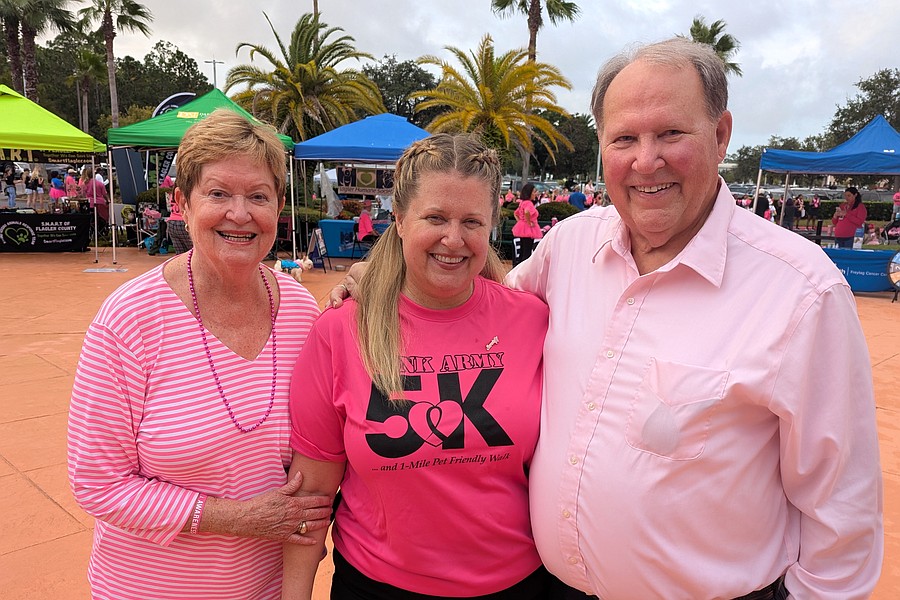Pink Army 5K official starter Regan Hansen, center, with her parents, Linda and Flagler County Commissioner Greg Hansen. Photo by Brent Woronoff
