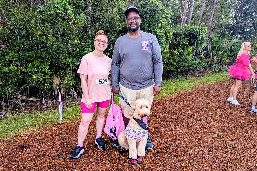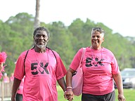 A couple walked together in the 1-Mile Fun Walk at the Pink Army 5K at AdventHealth Palm Coast. Photo by Hannah Hodge
