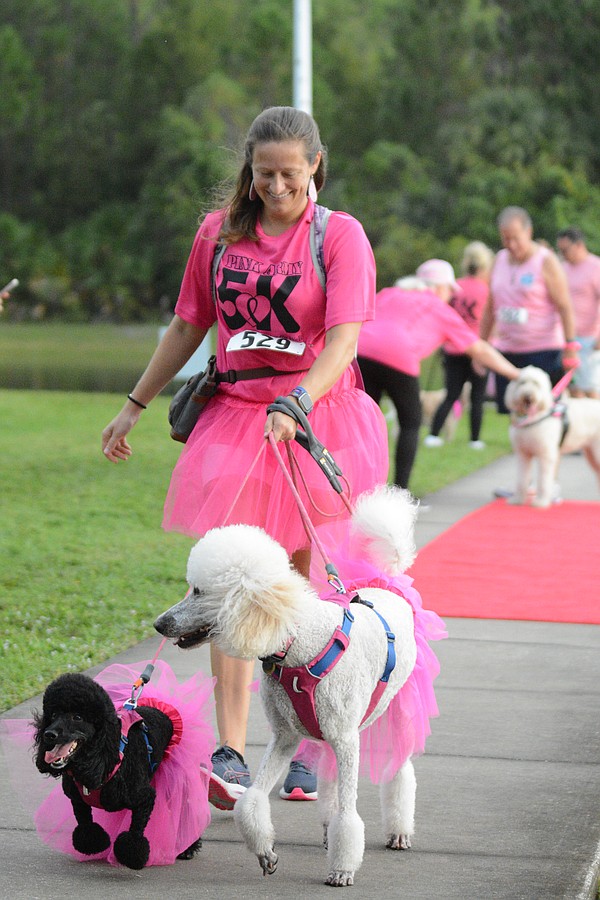 Cindy Dalecki walked her dog in the 1-Mile Pet Friendly Fun Walk at the Pink Army 5K. Photo by Hannah Hodge