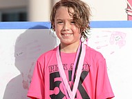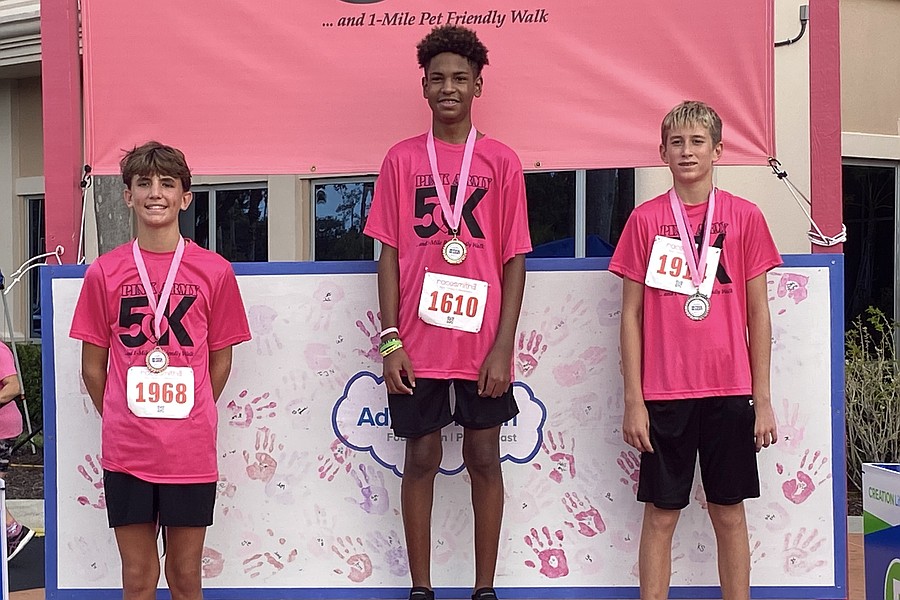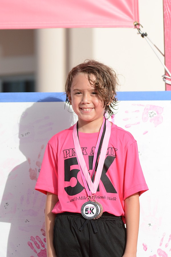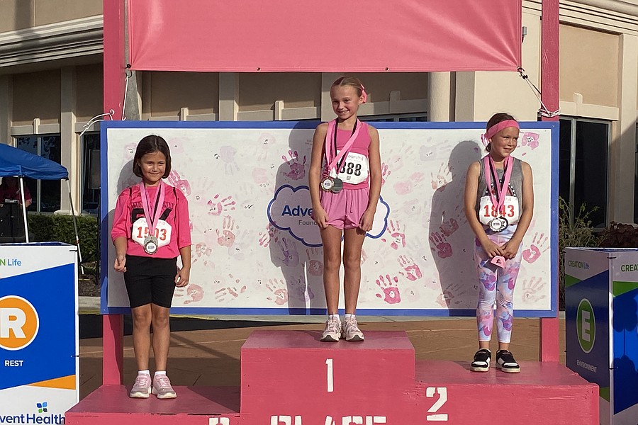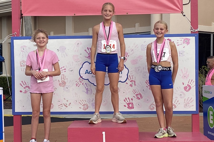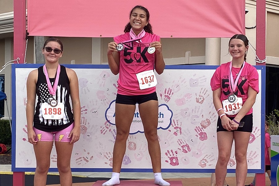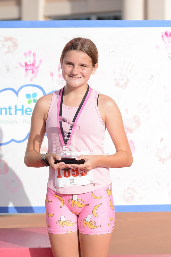 Madelyn Yorgey, 12, of Palm Coast, was the female winner of the Pink Army 5K. Madelyn placed seventh overall with a time of 21:17. Photo by Hannah Hodge