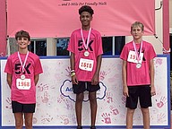 Aaron Short, who placed second overall in the 5K, with Kelsie Lombard and her son Kaleb. Photo by Brent Woronoff