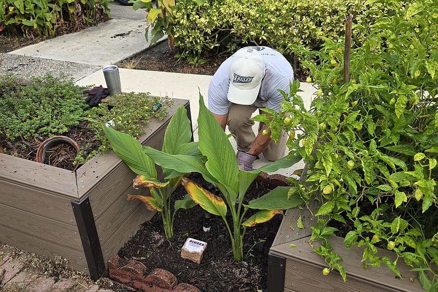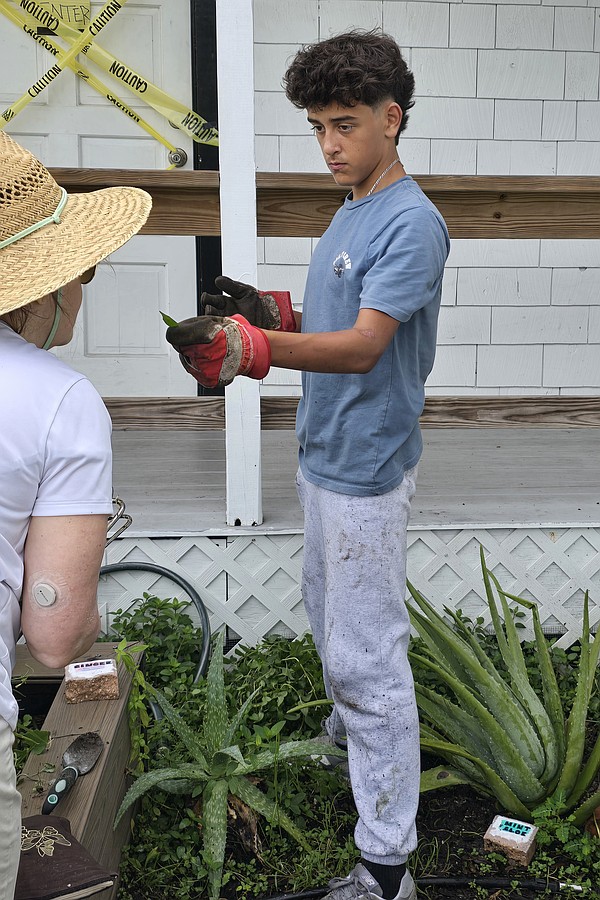 Andrea Forester contributed a large aloe plant to the garden and Gavette planted a large marshmallow plant she started from seed last spring.
