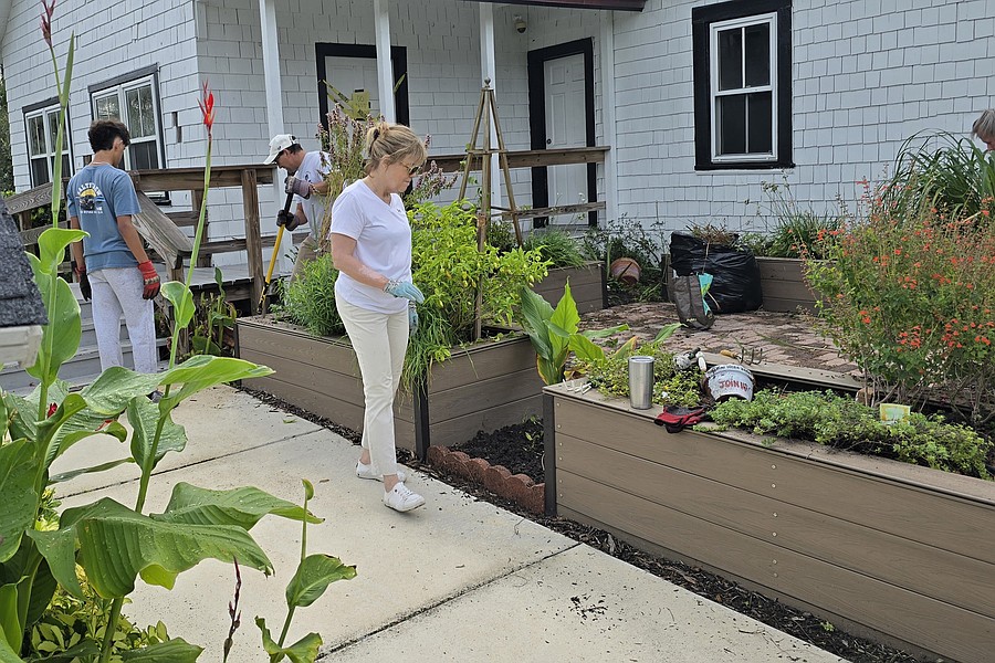Seaside Herb Society members cleaned up their community garden at Bailey Riverbridge Gardens on Saturday, Sept. 27.