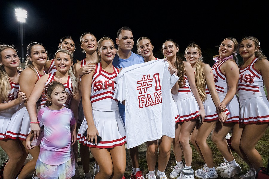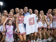 The Seabreeze cheer team gives their number one fan Kiernan a special shirt during halftime at the Daytona Stadium on Friday, Oct. 3. Photo by Michele Meyers