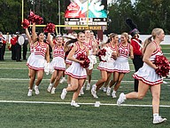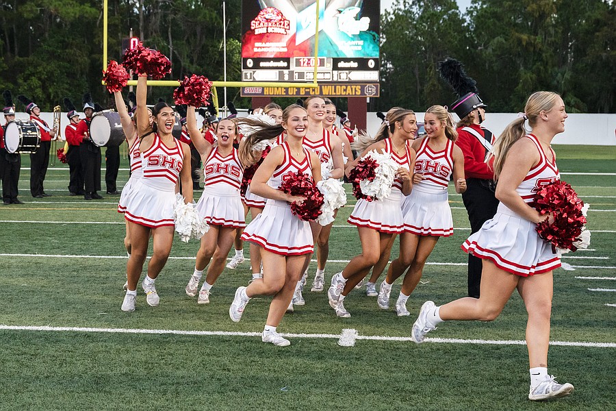 Seabreeze cheerleaders celebrate before the start of the game against Atlantic at the Daytona Stadium on Friday, Oct. 3. Photo by Michele Meyers