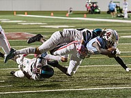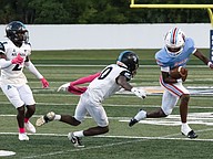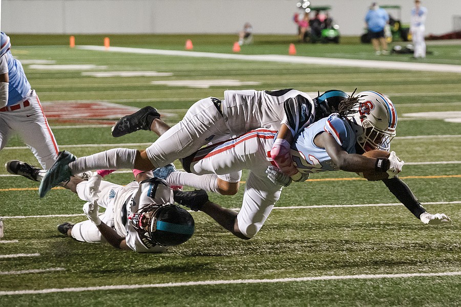 Seabreeze running back Jeremias George dives just short of the end zone in the game against Atlantic at the Daytona Stadium on Friday, Oct. 3. Photo by Michele Meyers