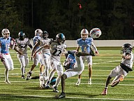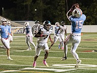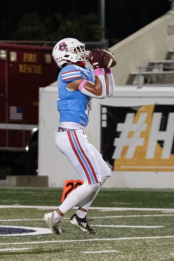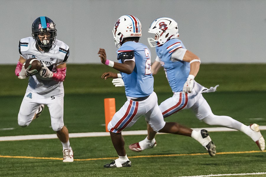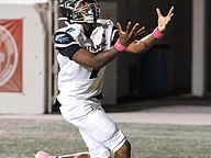 Seabreeze linebacker Edison Parra catches a long pass by quarterback Jayce Gainer in the game against Atlantic at the Daytona Stadium on Friday, Oct. 3. Photo by Michele Meyers