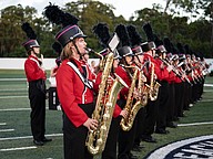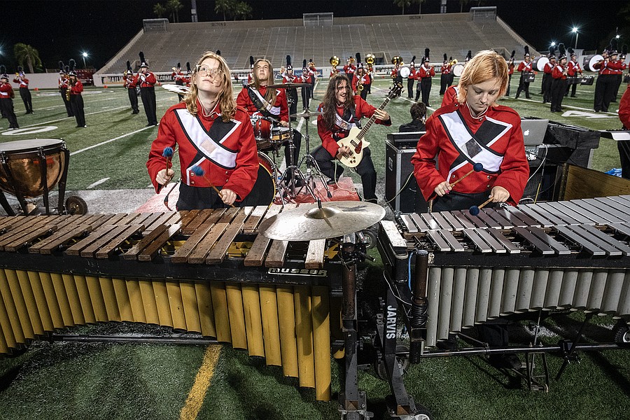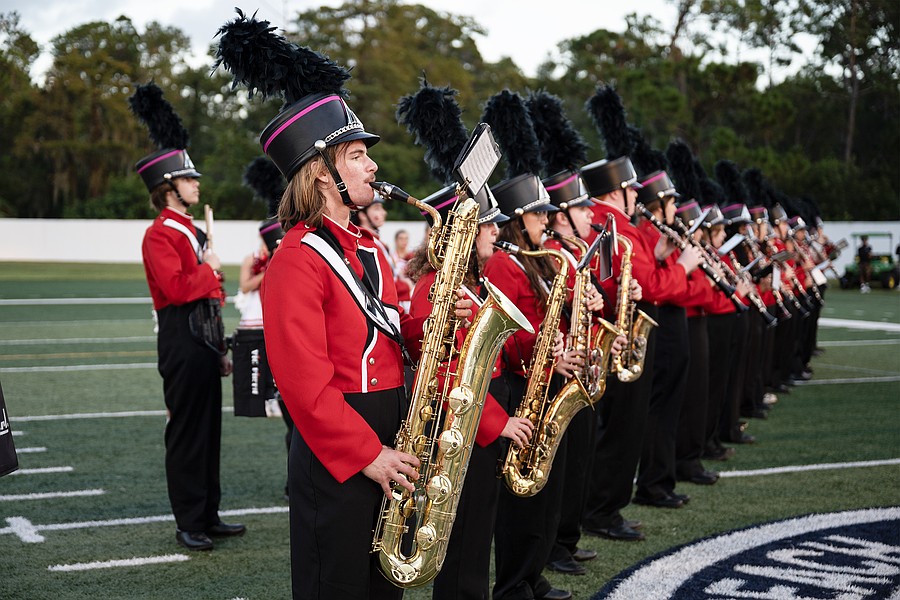 The Seabreeze marching band waits to perform during the Homecoming Court introduction at the Daytona Stadium on Friday, Oct. 3. Photo by Michele Meyers