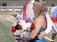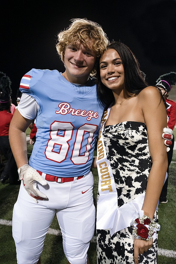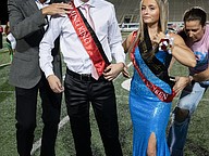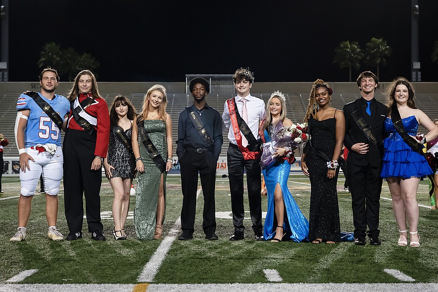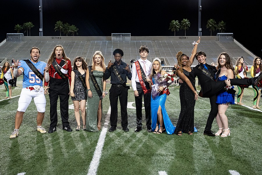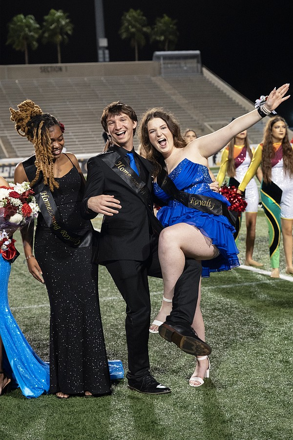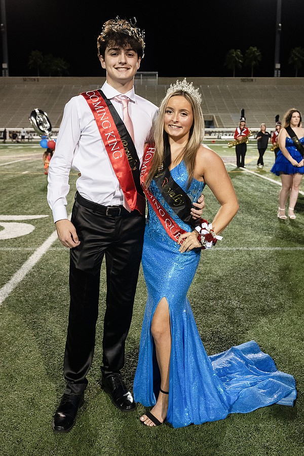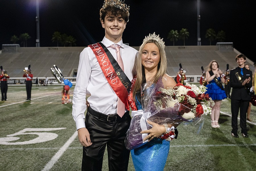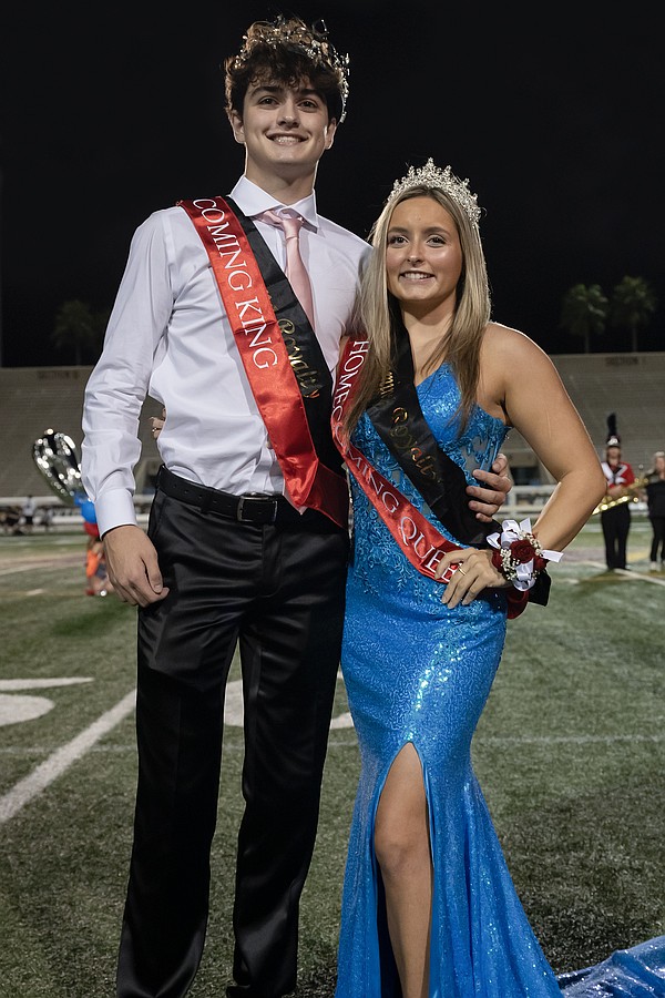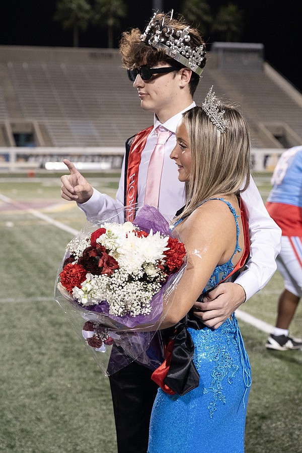 Seabreeze Homecoming king Shane Triplett (left) and queen Hayden Alexander (right) at the Daytona Stadium on Friday, Oct. 3. Photo by Michele Meyers
