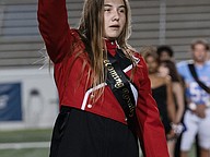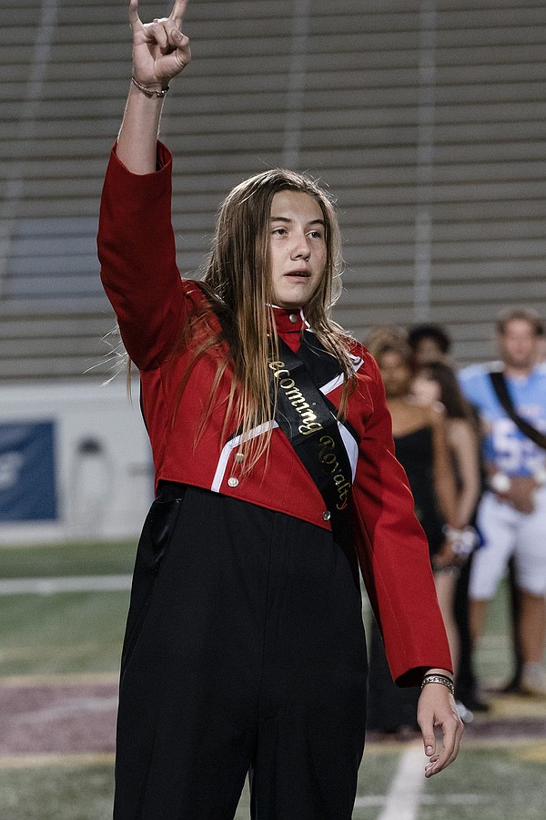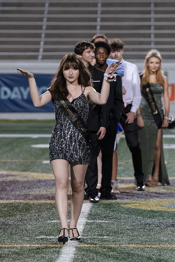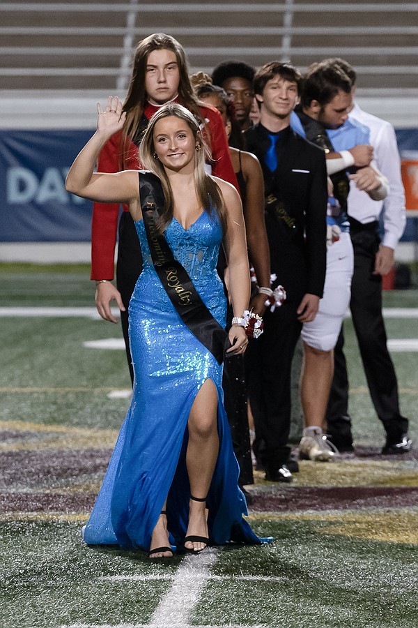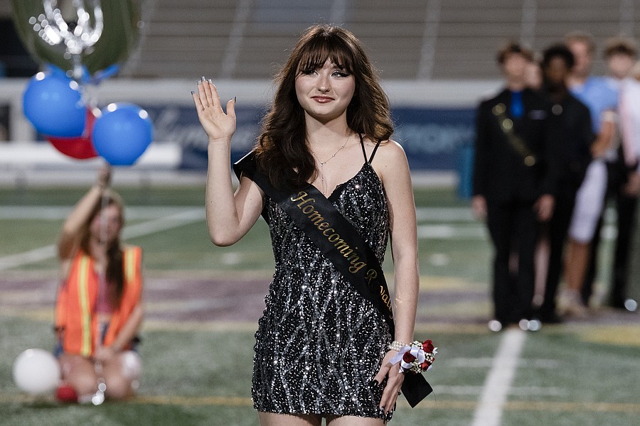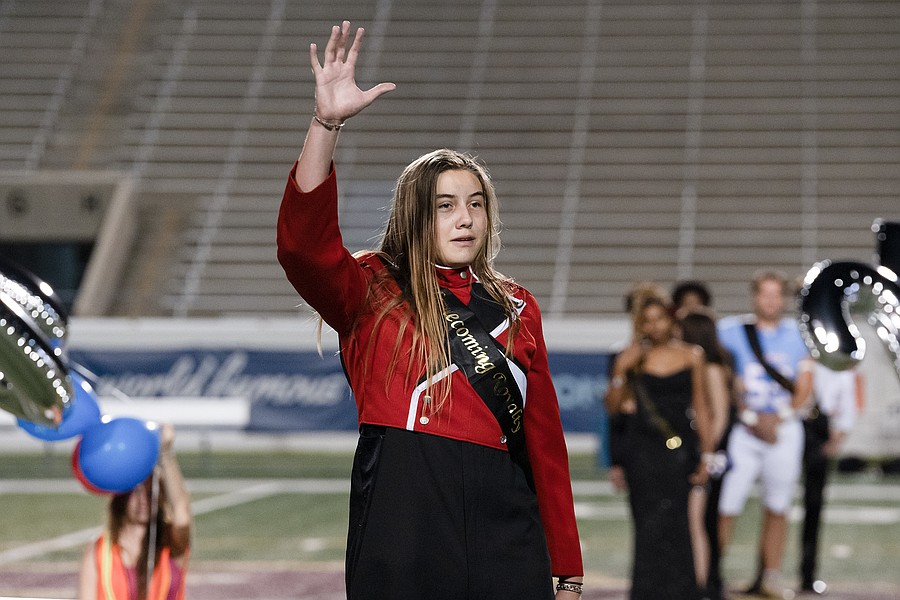 Seabreeze senior Hayden Alexander waves as she waits to be introduced with the rest of the homecoming court at the Daytona Stadium on Friday, Oct. 3. Photo by Michele Meyers