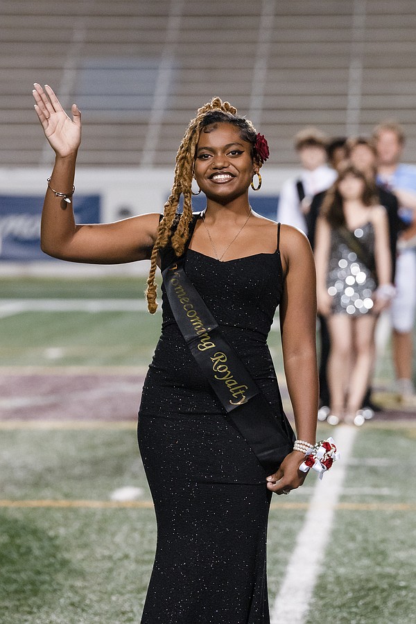 Seabreeze senior homecoming court representative Amira Ferguson waves to the crowd at the Daytona Stadium on Friday, Oct. 3. Photo by Michele Meyers