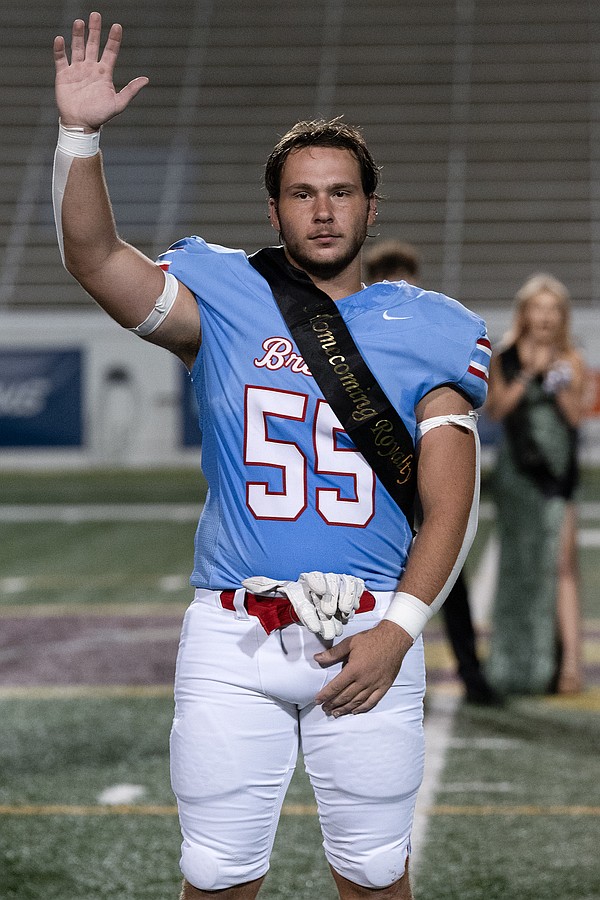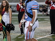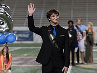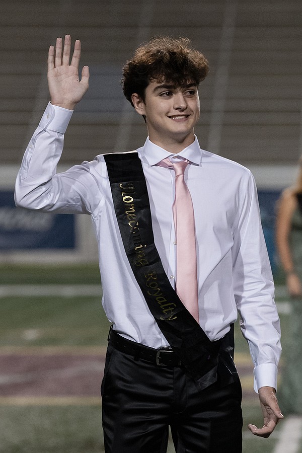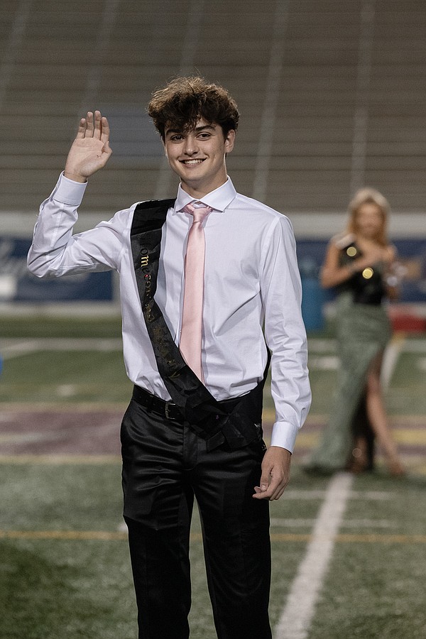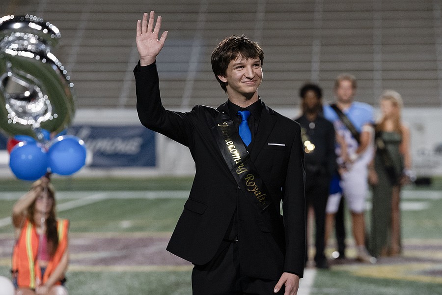 Seabreeze senior homecoming court representative Jonas Cook waves to the crowd at the Daytona Stadium on Friday, Oct. 3. Photo by Michele Meyers