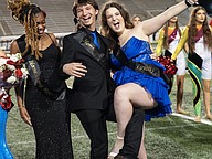 Seabreeze senior homecoming court royalty Amira Ferguson, Sig Lewis and Emma Miller goof around at the Daytona Stadium on Friday, Oct. 3. Photo by Michele Meyers