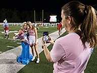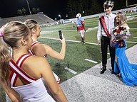 Seabreeze cheerleaders grab some photos of homecoming king Shane Triplett (second from right) and queen Hayden Alexander (right) at the Daytona Stadium on Friday, Oct. 3. Photo by Michele Meyers