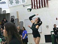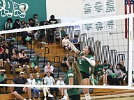 Matanzas' Bristol Foley hits the ball over the net. Photo by Brent Woronoff