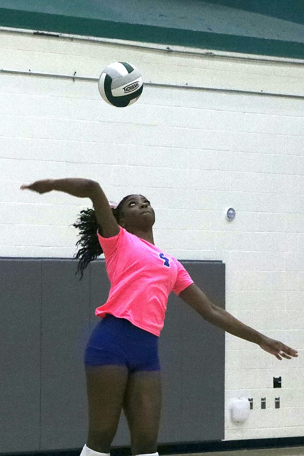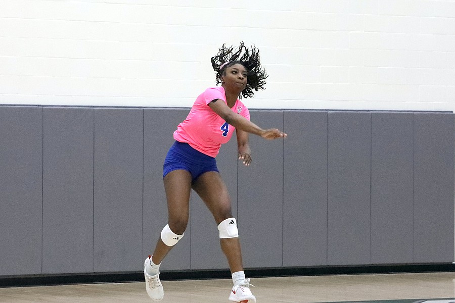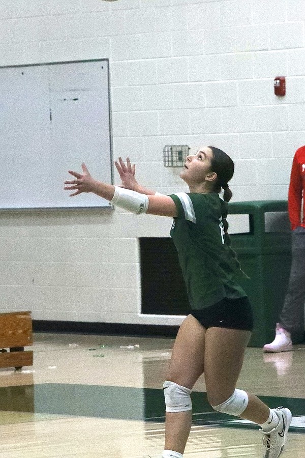 FPC's Haley Sobin throws the ball in the air to serve. Photo by Brent Woronoff