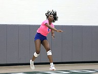 Matanzas' Sanigh Arneaud hits over the net. Arneaud had 10 kills for the Pirates. Photo by Brent Woronoff