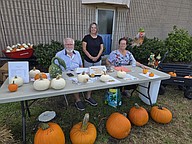 Grace Lutheran Church congregation members: Scott and Hope Nattinger, and Ellie Faust, who has been volunteering at the pumpkin patch for 18 years and has managed it since 2021. Courtesy photo