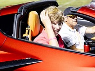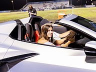 Junior class princess Addison Alred gets a ride in one of the eight Corvettes. Photo by Keishia McLendon
