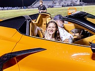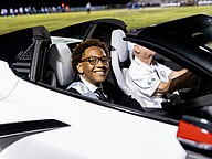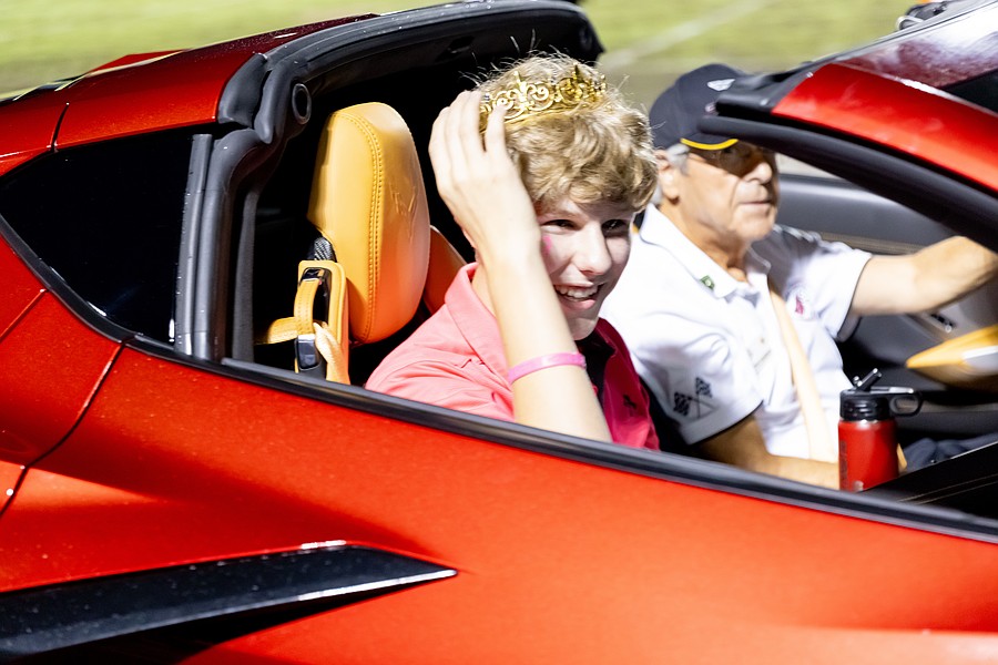 Lawrence and Gilpin and the underclass princes and princesses each got a two-lap ride around the stadium track in a Corvette courtesy of the Flagler County Corvette Club. There were eight Corvettes in the parade.