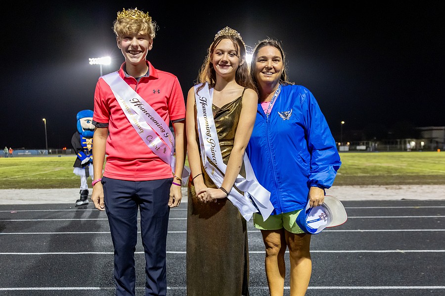 Freshman class prince and princess Kingston Schmidt and Adyson Metcalf with SGA Advisor Brandie Alred. Photo by Keishia McLendon