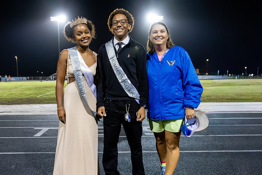 Homecoming queen and king Paityn Lawrence and KJ Gilpin with SGA Advisor Brandie Alred. Photo by Keishia McLendon