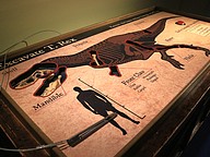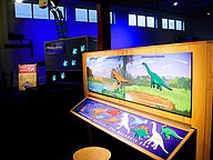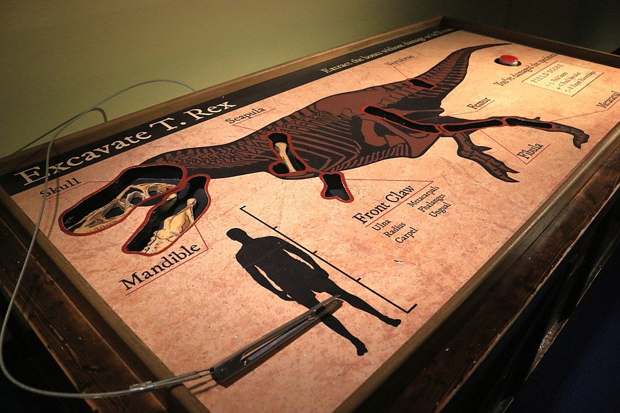 The children's section of the exhibition had several games for kids to play to learn about dinosaurs, including this display where kids can 'excavate' dinosaur bones. Photo by Sierra Williams