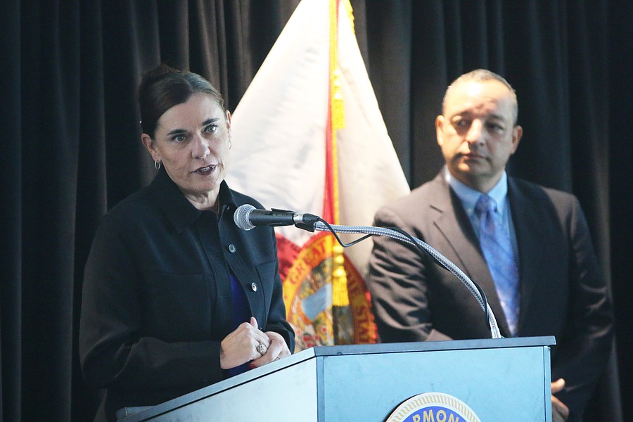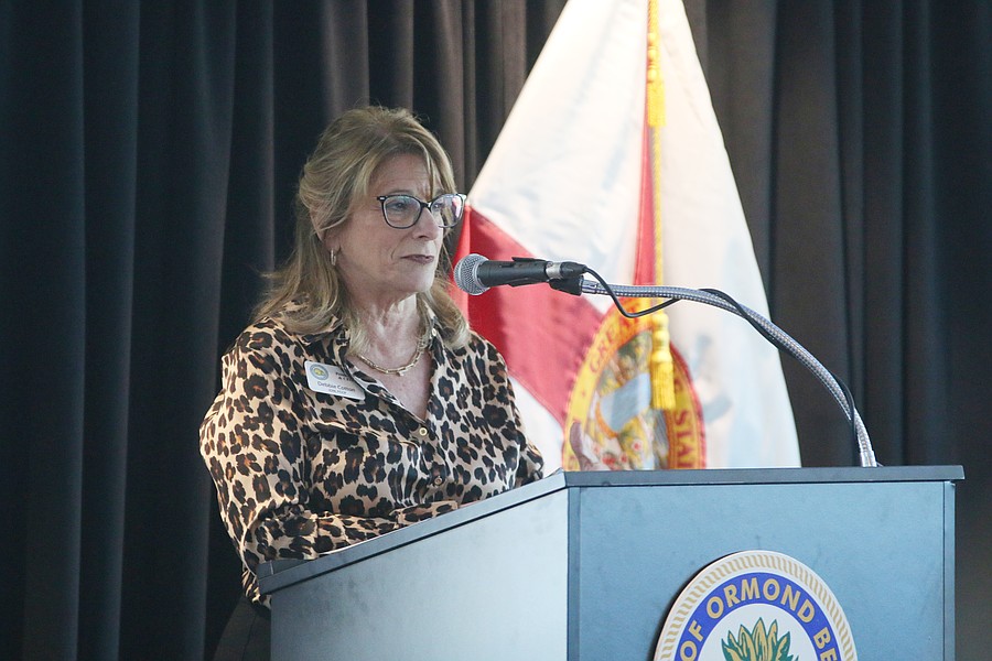 Ormond Beach Chamber of Commerce President and CEO Debbie Cotton speaks during the 2025 State of the City address on Tuesday, Oct. 14. Photo by Jarleene Almenas