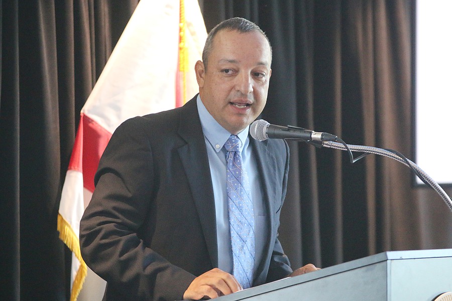 Eric Palacios, Ormond Beach Chamber of Commerce board chair, speaks during the 2025 State of the City address on Tuesday, Oct. 14. Photo by Jarleene Almenas