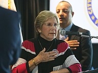 Peggy Farmer recites the pledge of allegiance during the 2025 State of the City address on Tuesday, Oct. 14. Photo by Jarleene Almenas
