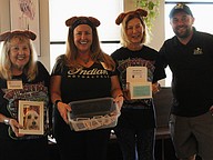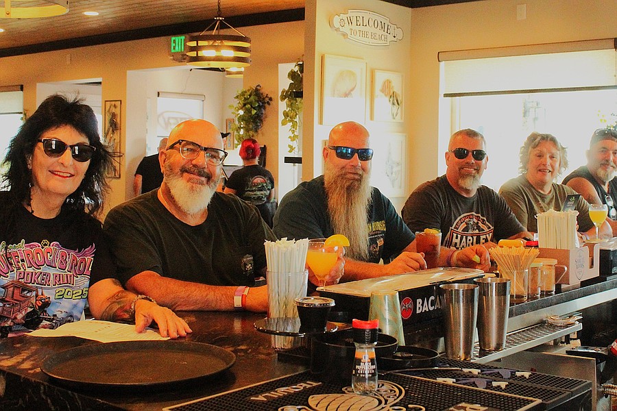 Volunteers Connie Whitehead, Jami Gallegos, Ann Forsell, and Alan Cooley manager of the Oceanside Beach Bar and Grill during the Ruff, Rock and Roll Poker Run. Photo by Hannah Hodge