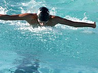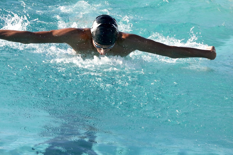Matanzas' Leo Peters won the 100 butterfly. He also won the 200 freestyle relay. Photo by Brent Woronoff