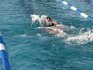FPC's Stella Guymon won the 100 backstroke. She also won the 200 individual medley. Photo by Brent Woronoff