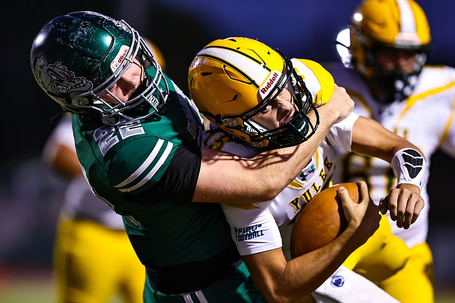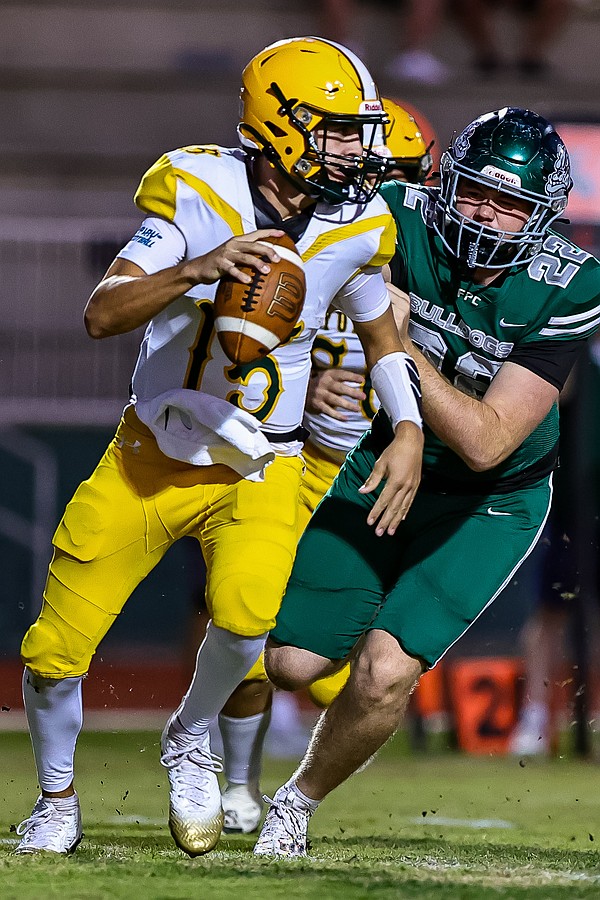 FPC defensive end Jacob Harnisch (22) chases down Yulee quarterback Jackson Visconti. Harnisch had the game's only sack. Photo by Keishia McLendon