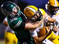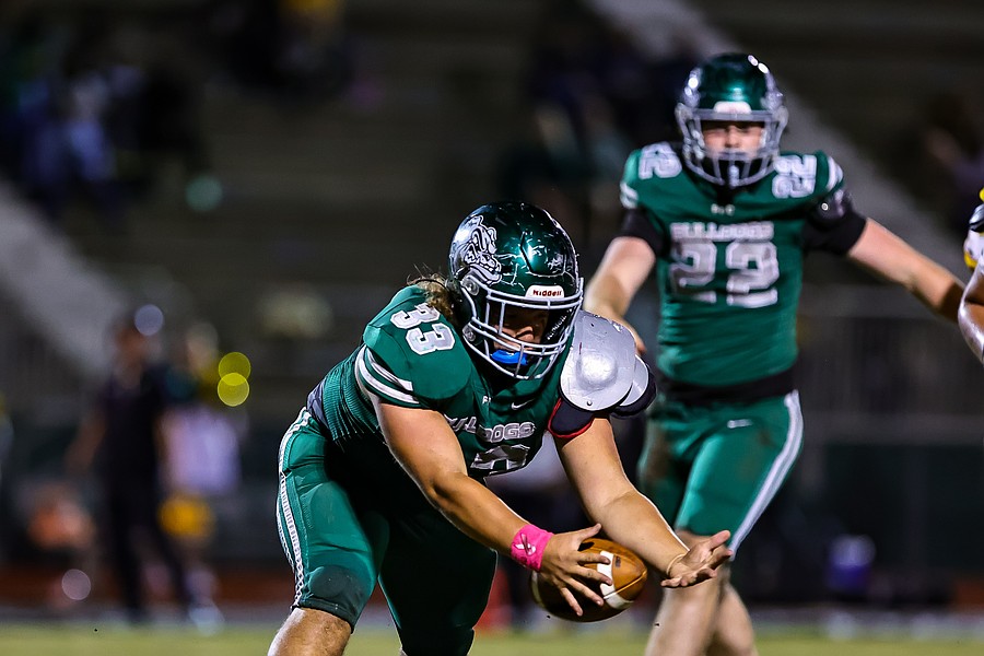 FPC defensive tackle Reagan Melland can't haul in this potential interception, but he did score his first touchdown later in the game. Photo by Keishia McLendon