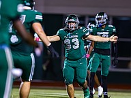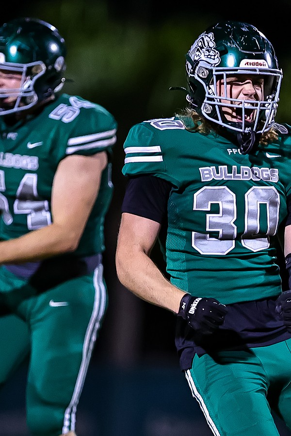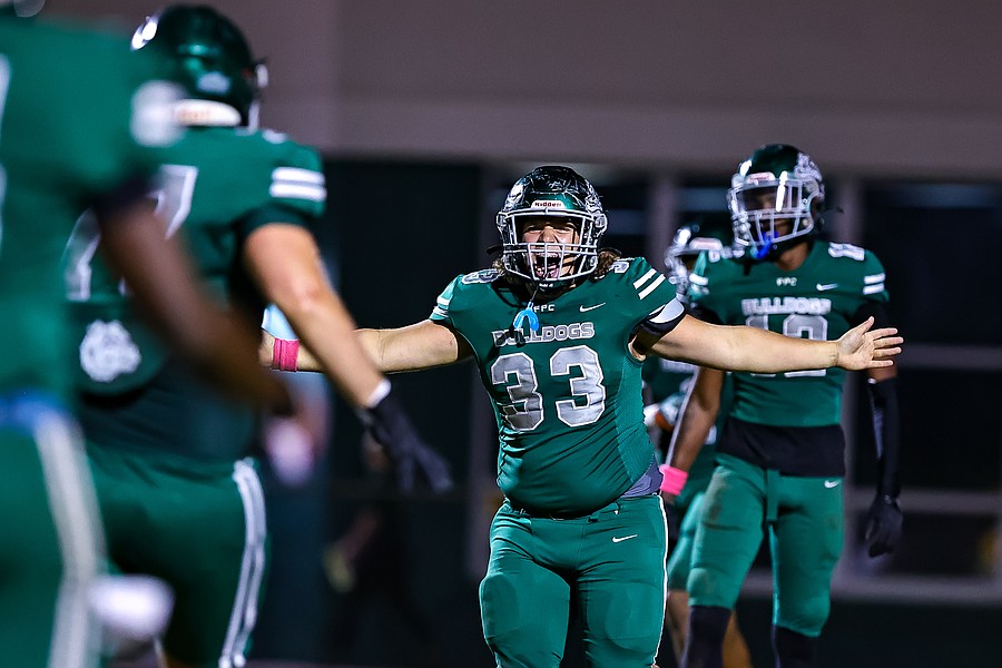 FPC's Reagan Melland (33) celebrates his third-quarter fumble return for a touchdown. Photo by Keishia McLendon