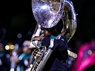 Percussionists during the FPC band's halftime show. Photo by Keishia McLendon