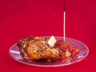A Huey Magoo's server displays a plate of chicken tenders and sauce. Photo by Sydney Tevin