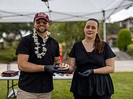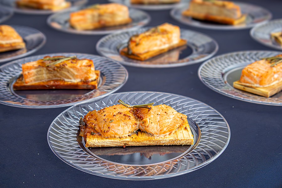 Stonewood staff serve salmon samples. Photo by Sydney Tevin