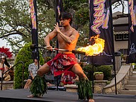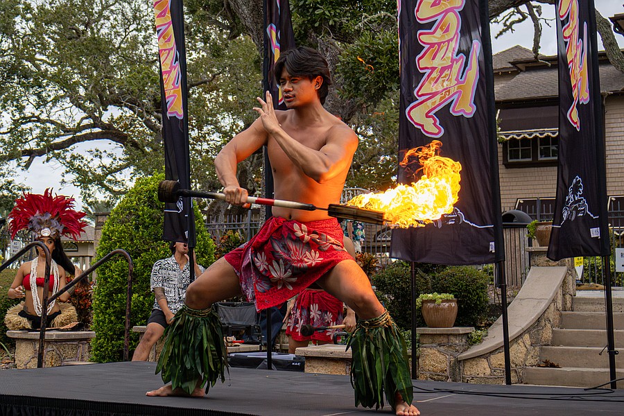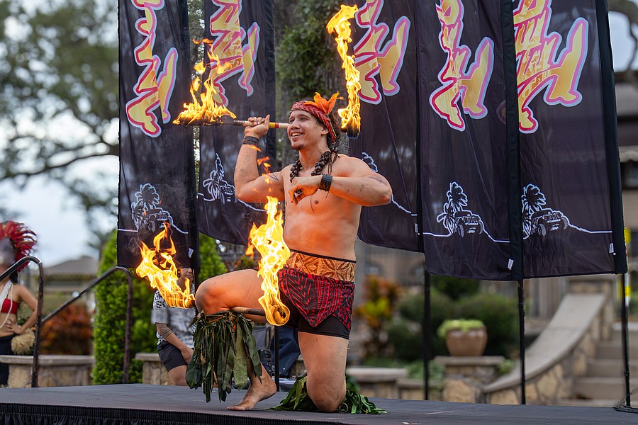 A Polynesian fire dancer performs his routine on stage. Photo by Sydney Tevin