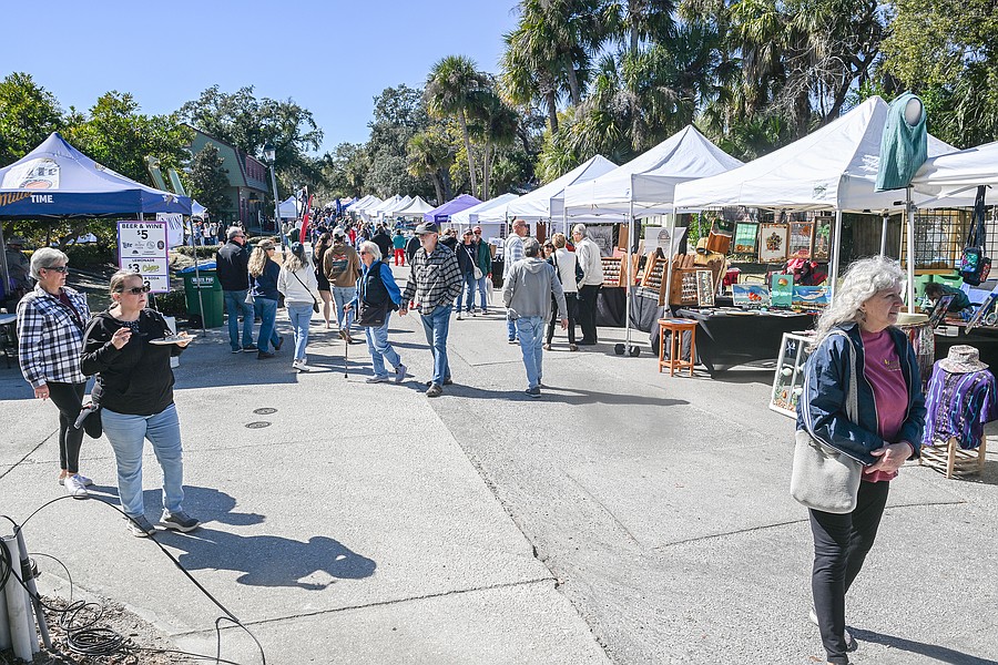 People peruse artist's wares at the 12th annual Granada Grand Art Festival on Saturday, Feb. 7. Photo by Michele Meyers