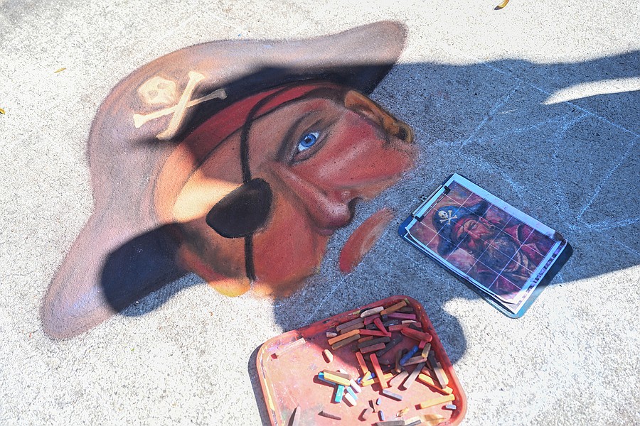 Nikki Brown's chalk portrait is a work in progress at the 12th annual Granada Grand Art Festival on Saturday, Feb. 7. Photo by Michele Meyers