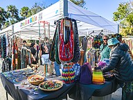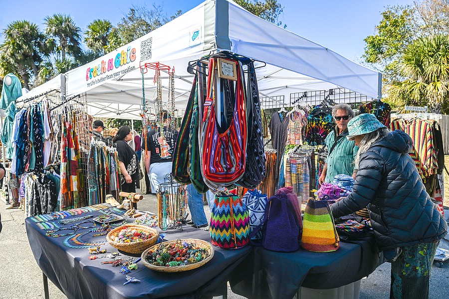 People peruse an artist's wares at the 12th annual Granada Grand Art Festival on Saturday, Feb. 7.