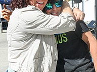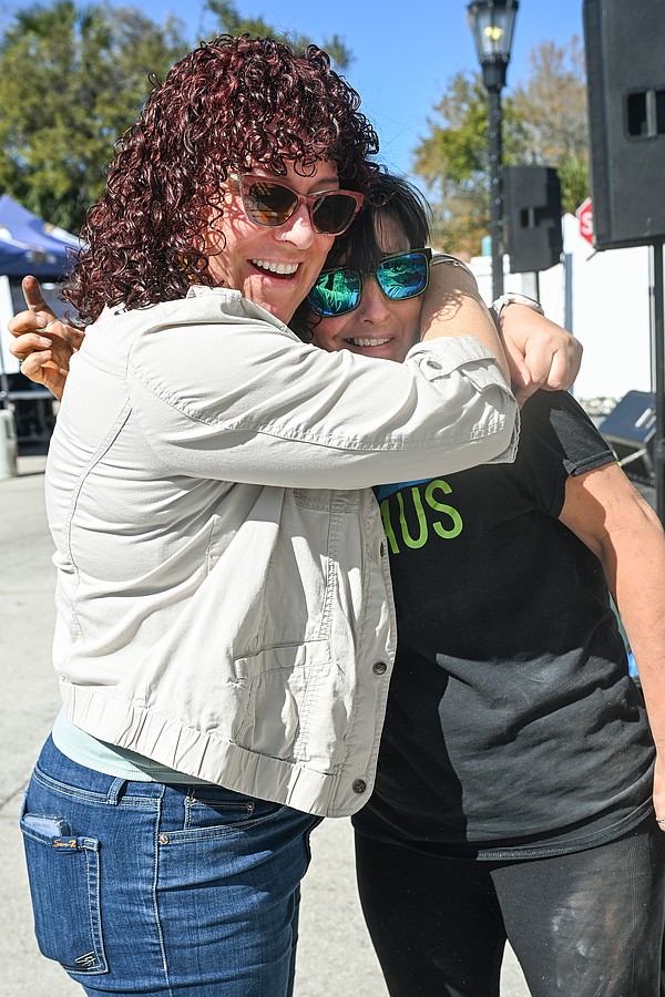 Chalk artist Rachel Gancitano (right) gets a hug from a friend at the 12th annual Granada Grand Art Festival on Saturday, Feb. 7. Photo by Michele Meyers