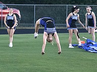 A cheerleader does a flip as the cheer team gets ready for the Pirates' entrance. Photo by Brent Woronoff