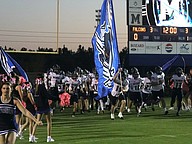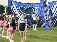 Carla and the other Pirates' cheerleaders get ready for the team's entrance onto the field. Photo by Brent Woronoff